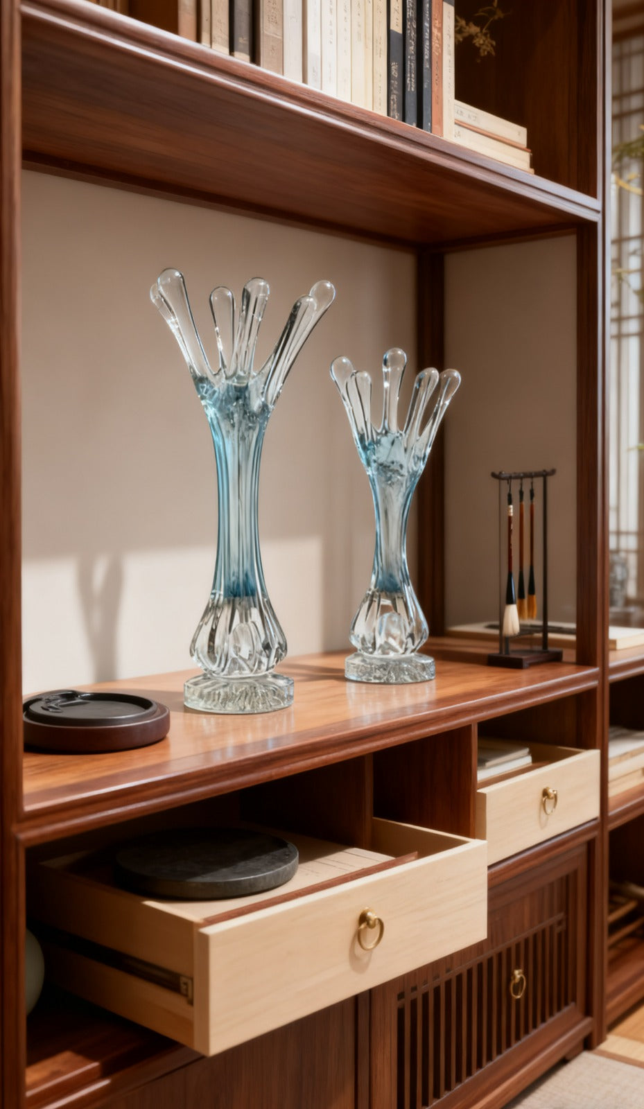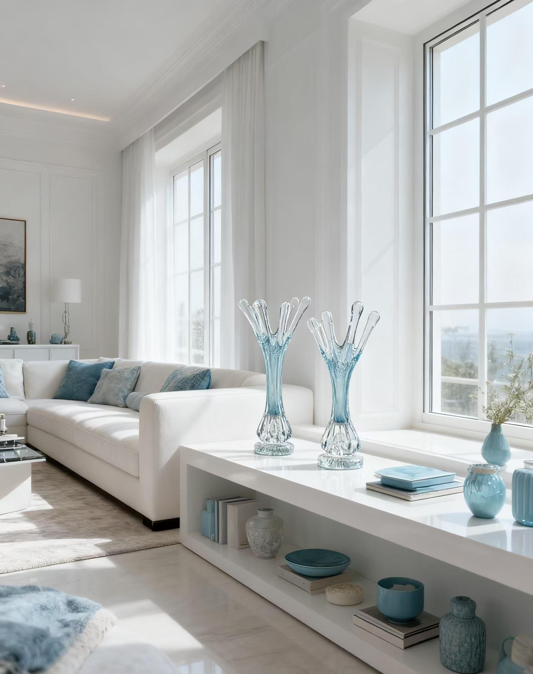 Each curve is a celebration of craftsmanship — blending transparency, texture, and tranquility into one sculptural statement piece. Perfect for living rooms, entry consoles, or accent corners where elegance meets serenity.