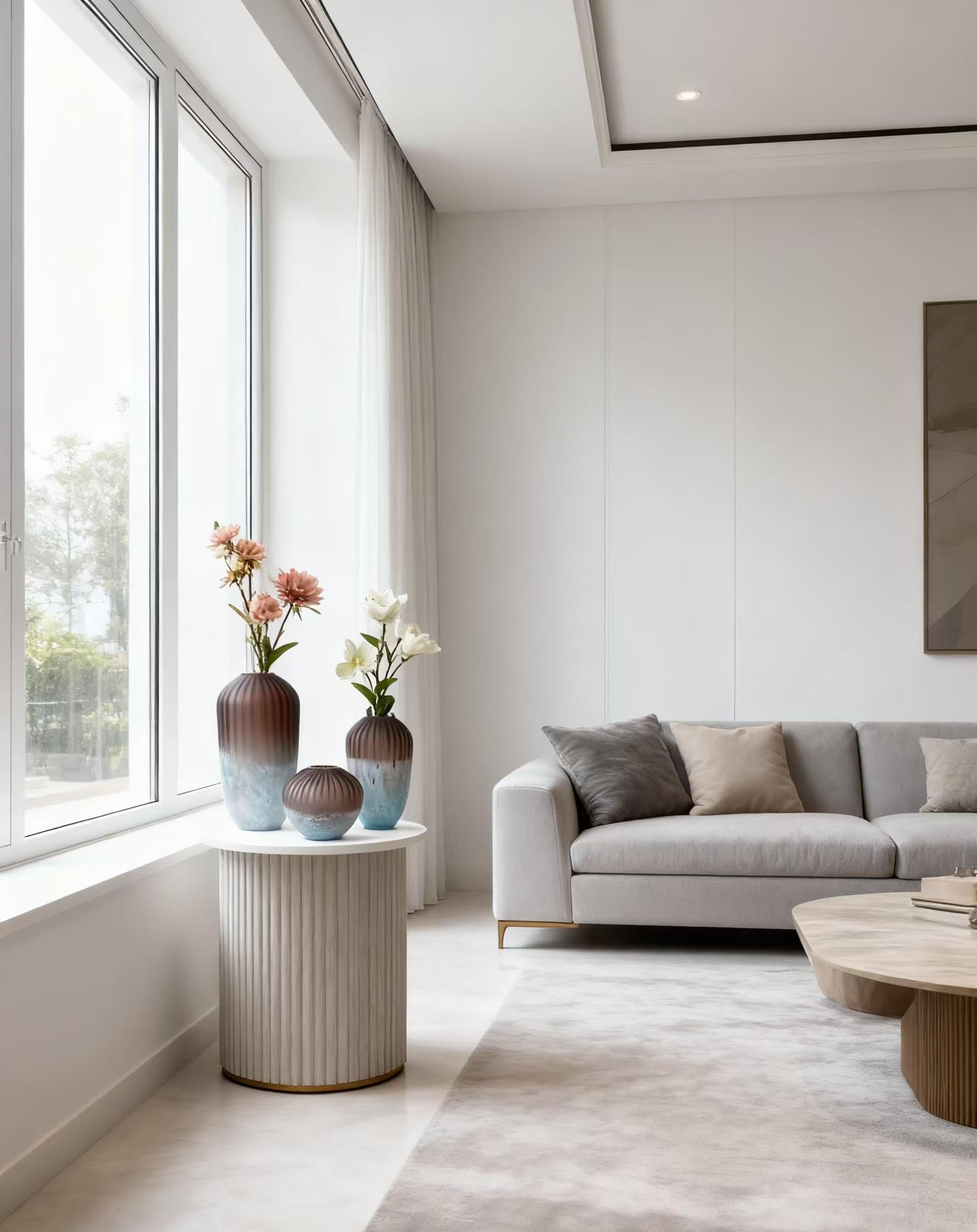 The smooth matte finish paired with ribbed surface detailing evokes both texture and softness, making each vase a sculptural accent that harmonizes effortlessly with minimalist and luxury interiors alike. Whether placed together or styled individually, this collection brings a refined balance of nature and modern artistry to your home.