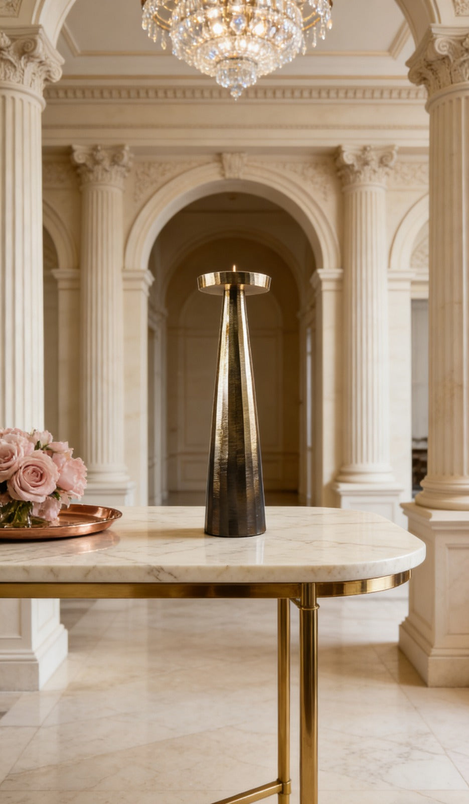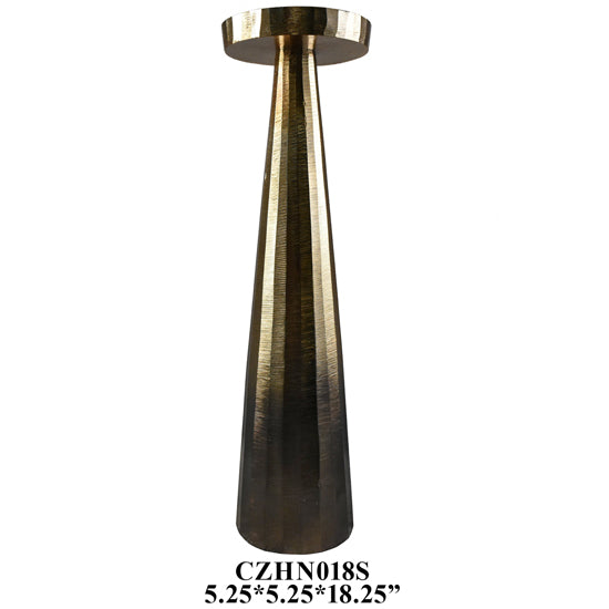 A BRASS candle holder is a decorative piece that incorporates the form or components of a hammer into a functional candle-holding design. It typically features a hammer’s handle and head—either real or sculpted—adapted with a secure platform, cup, or spike that holds a candle in place. The candle holder may stand upright using the hammer’s handle as a base, or lie horizontally with the candle mounted on the hammerhead. Made from materials like metal, wood, or mixed media, it blends rustic, industrial, or workshop-inspired aesthetics with practical home décor.