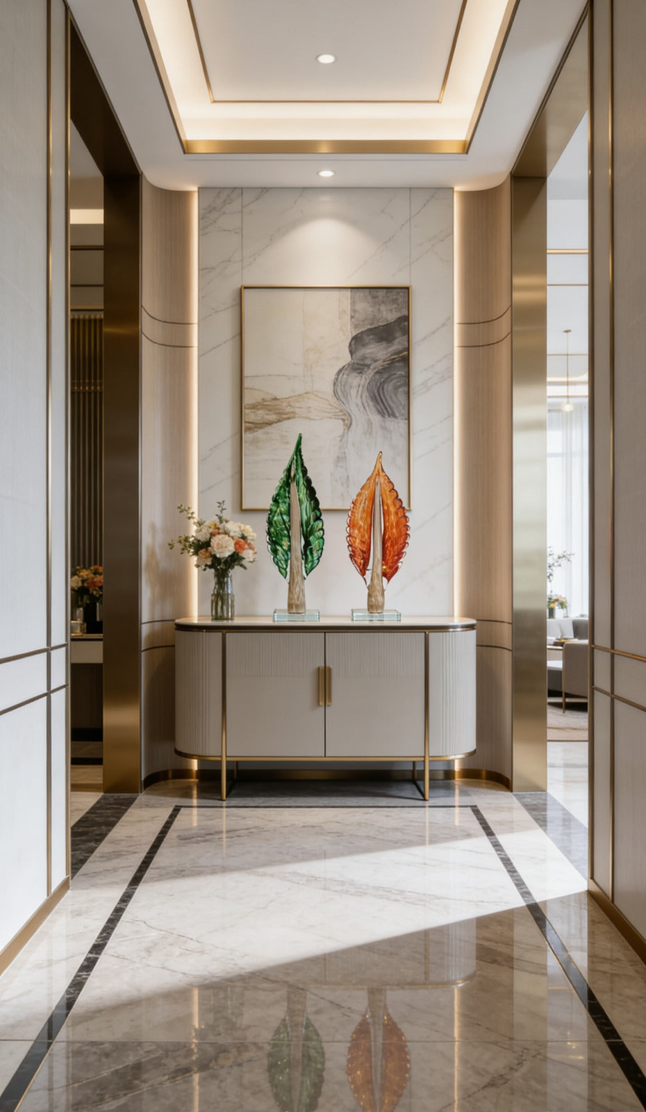 · Design: Cylindrical capsule silhouette with fluid internal gold motif