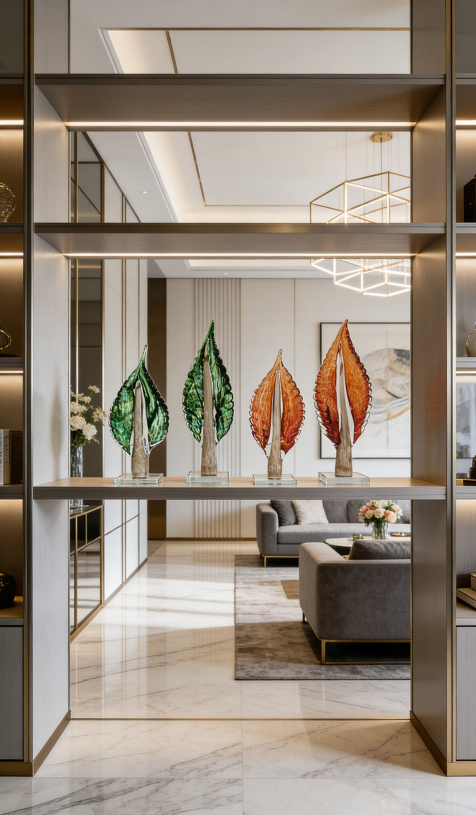 · Material: Handcrafted art glass leaves , Solid glass with textured vein detailing .