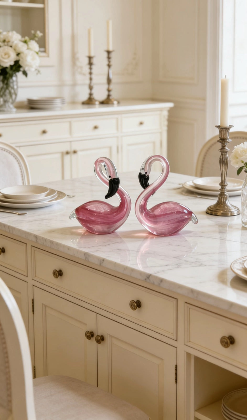 Whether styled individually or as a coordinated pair, these crystal vases invite calm luminosity and quiet grandeur into any setting.