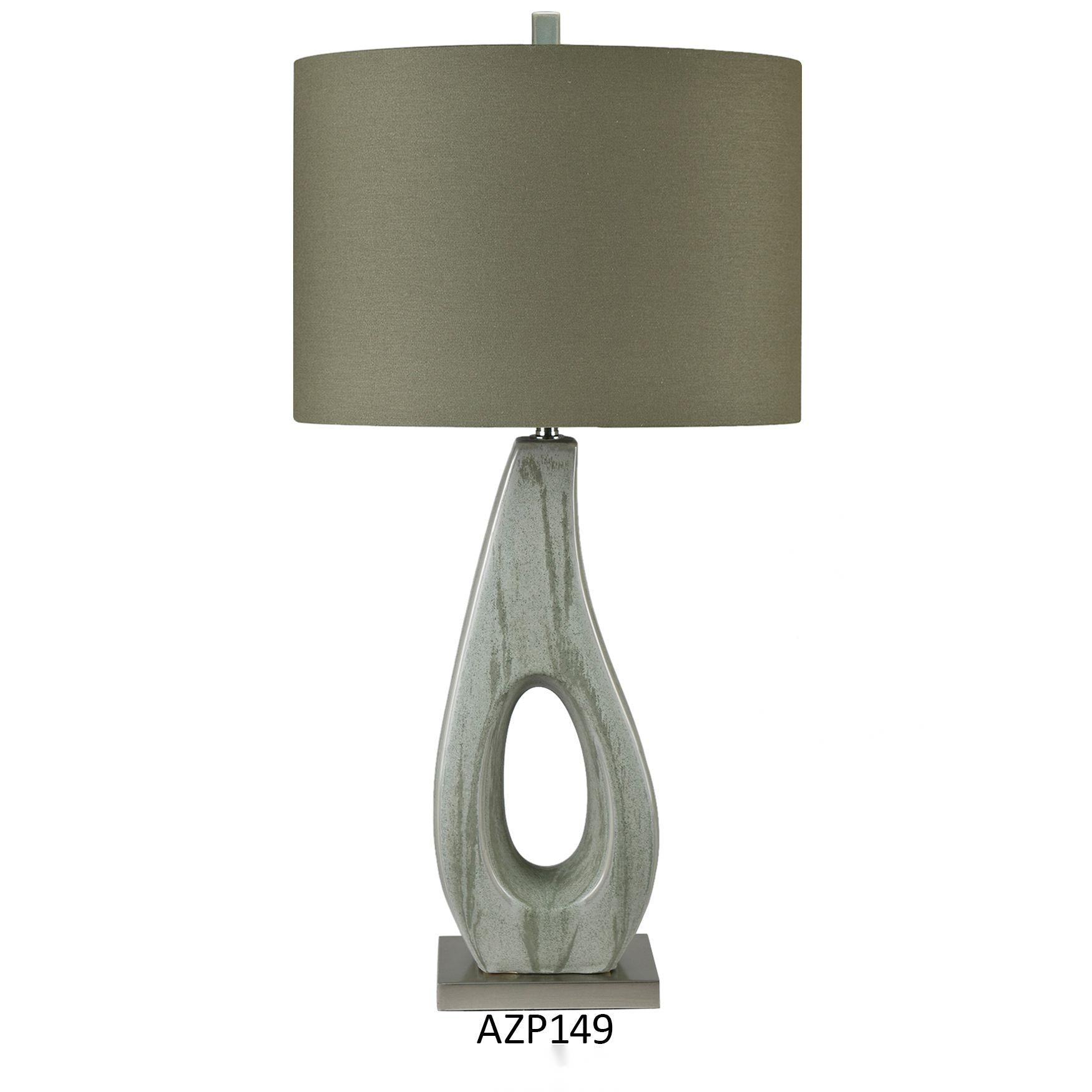Whitmore Contemporary Sculputred Table Lamp  33.5''Ht.,Ceramic & Metal  Glazed Green Finish  17/11 x 17/11 x 12 Green Linen Oval Shade